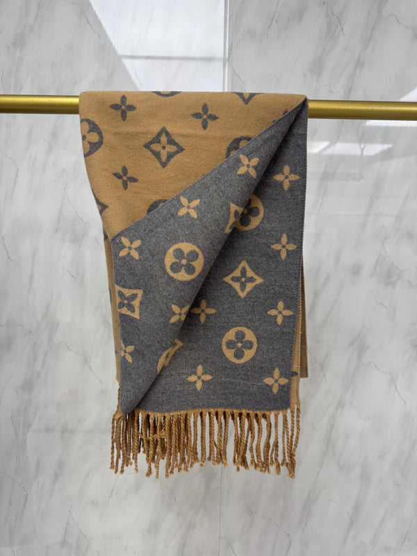 Camel & Grey Double Sided LV Inspired Scarf
